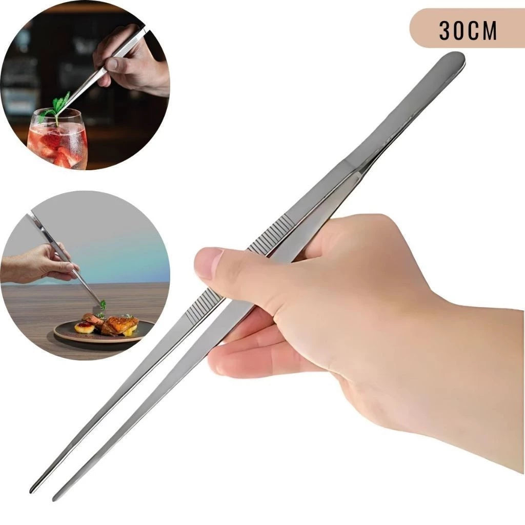 DESIGN: Feita em aço inoxidável nossa pinça culinária possui um formato ergonômico confortável. Usando nossa pinça você terá mais precisão para cozinhar ou então empratar seus pratos. Medidas: Comprimento: 1,5cm Largura: 1,5cm e altura: 30,5cm e pesa 75 gramas